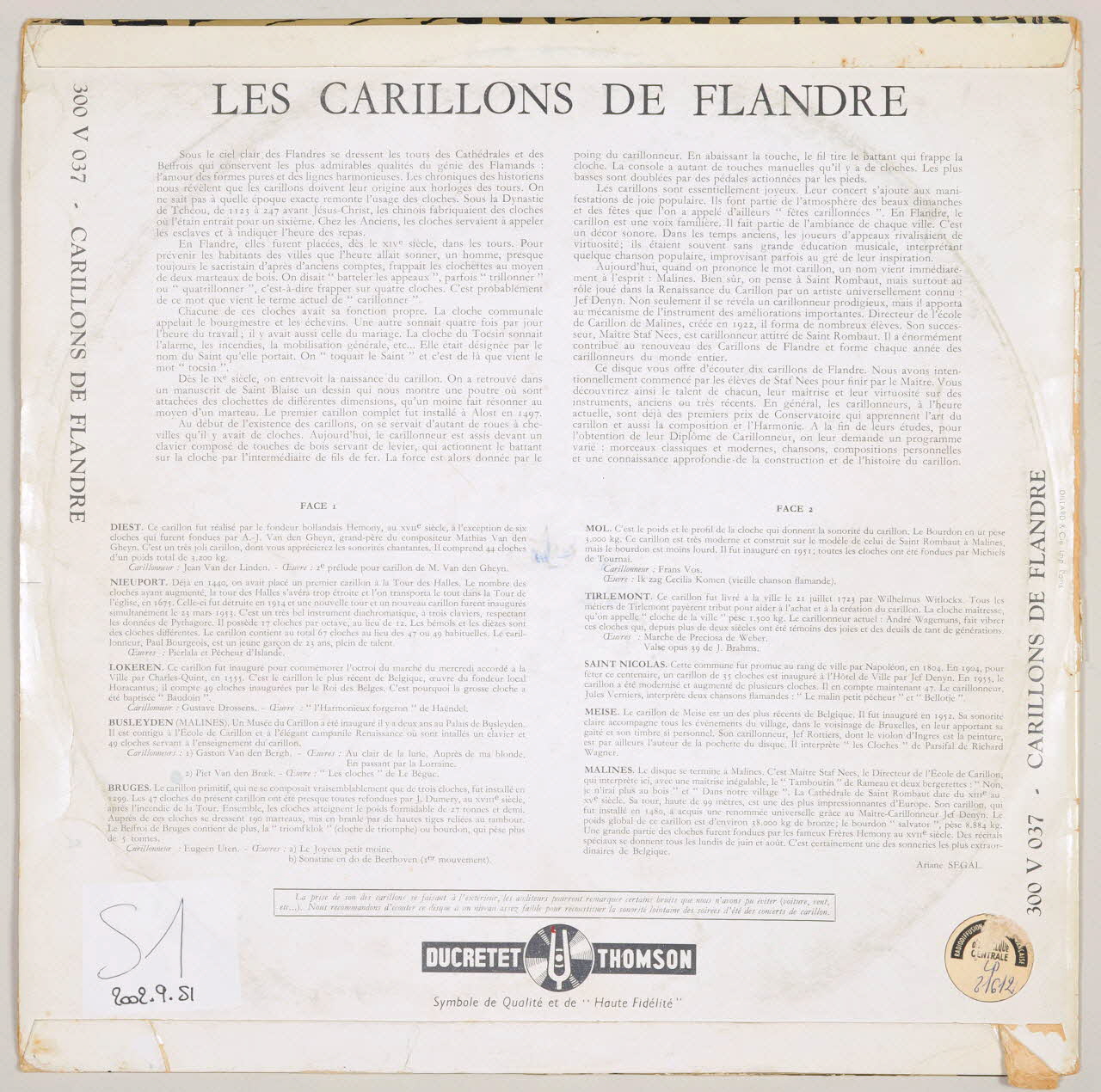 disque 33 tours, Sonatine en do, Les cloches, Au clair de la lune, Les cloches, Carillons de Flandre, Le tambourin, Marche de Preciosa, Bellotje, L'Harmonieux forgeron, 2è prélude pour carillon, En passant par la Lorraine, Ik zag Cecilia Komen, Dans notre village, Valse, Le malin petit pêcheur, Auprès de ma blonde, Pierlala était allé à Goldsvelde, Le joyeux petit moine, Non je n'irai plus au bois, Pêcheur d'Islande