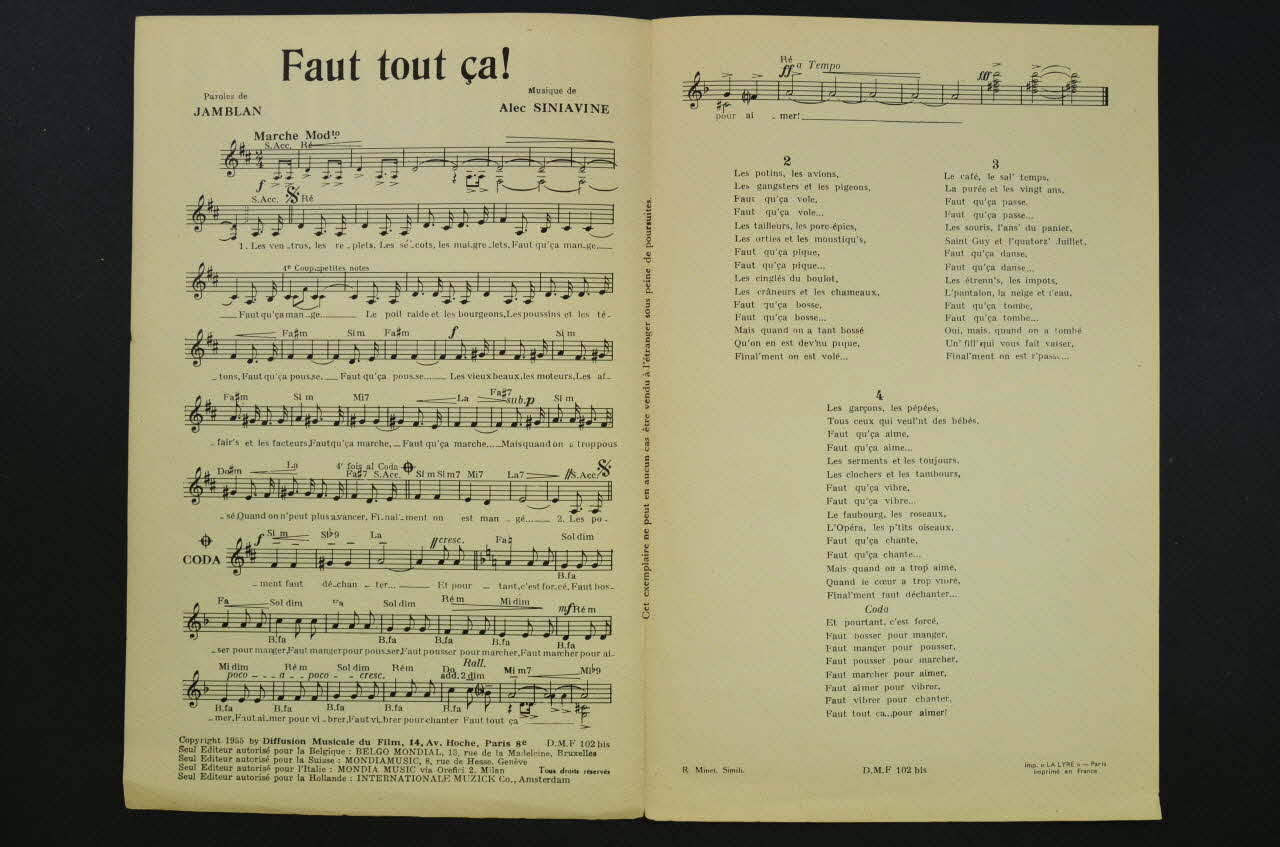 chanson, petit format, partition de musique, Faut tout ça !