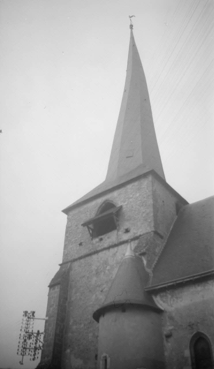 photographie, MNATP. Enquête sur la Sologne, Place de l'église. Clocher de l'église