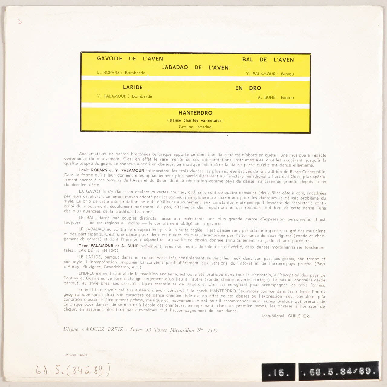 disque 33 tours, En dro, Jabadao de l'Aven, Bal de l'Aven, Hanterdro, Gavotte de l'Aven, Laridé