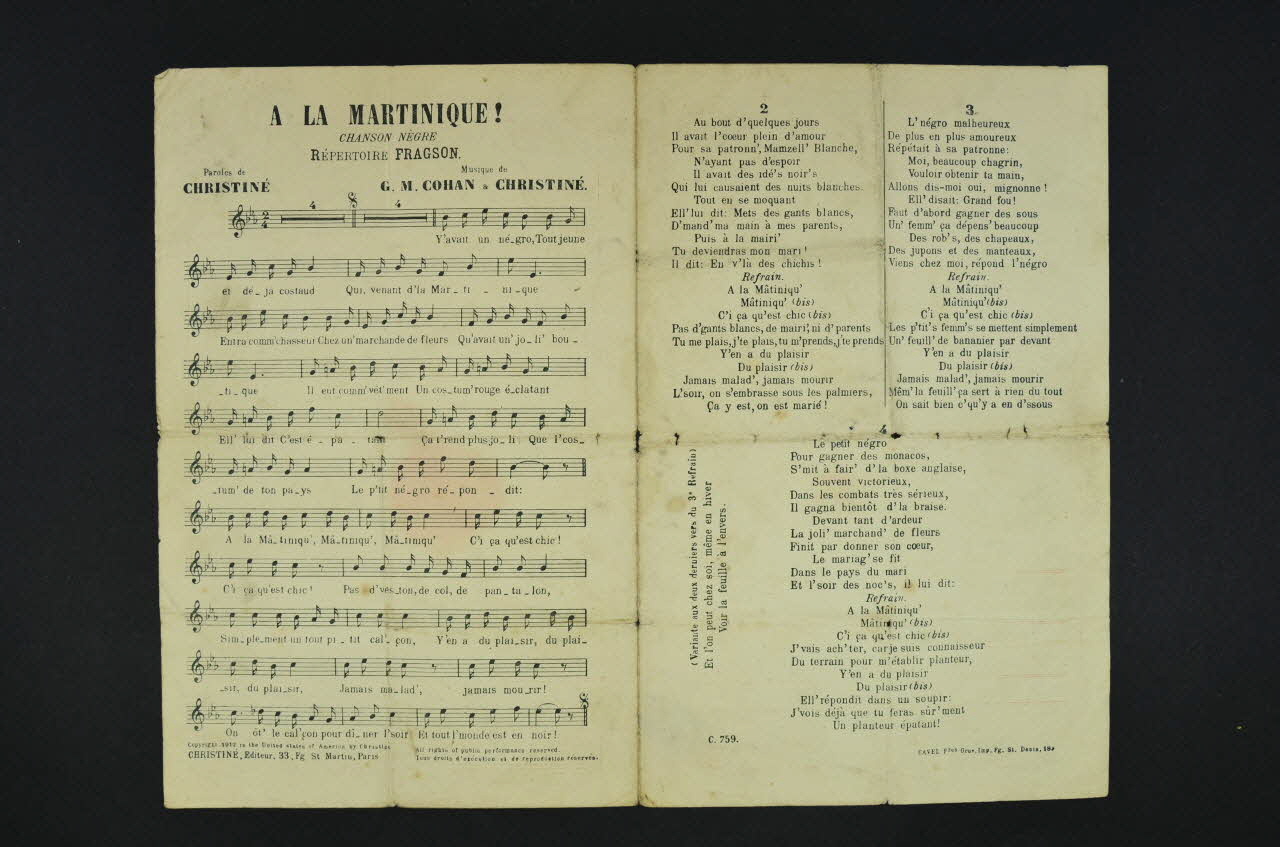 chanson, partition de musique, petit format, A la Martinique