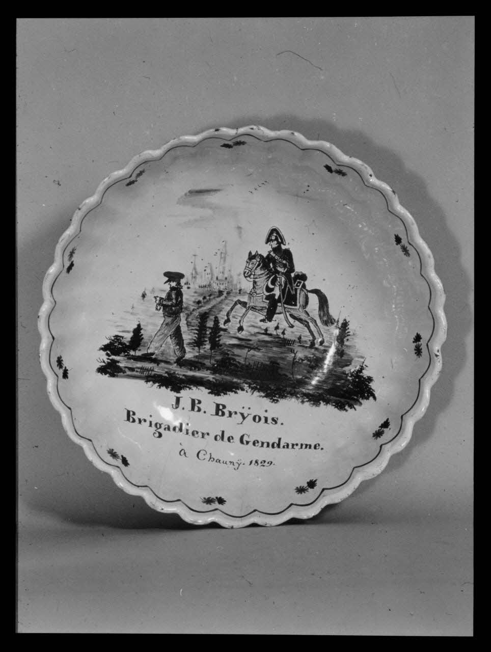 photographie, Saladier en faïence. Inscription "J.B. Brÿois" gendarme