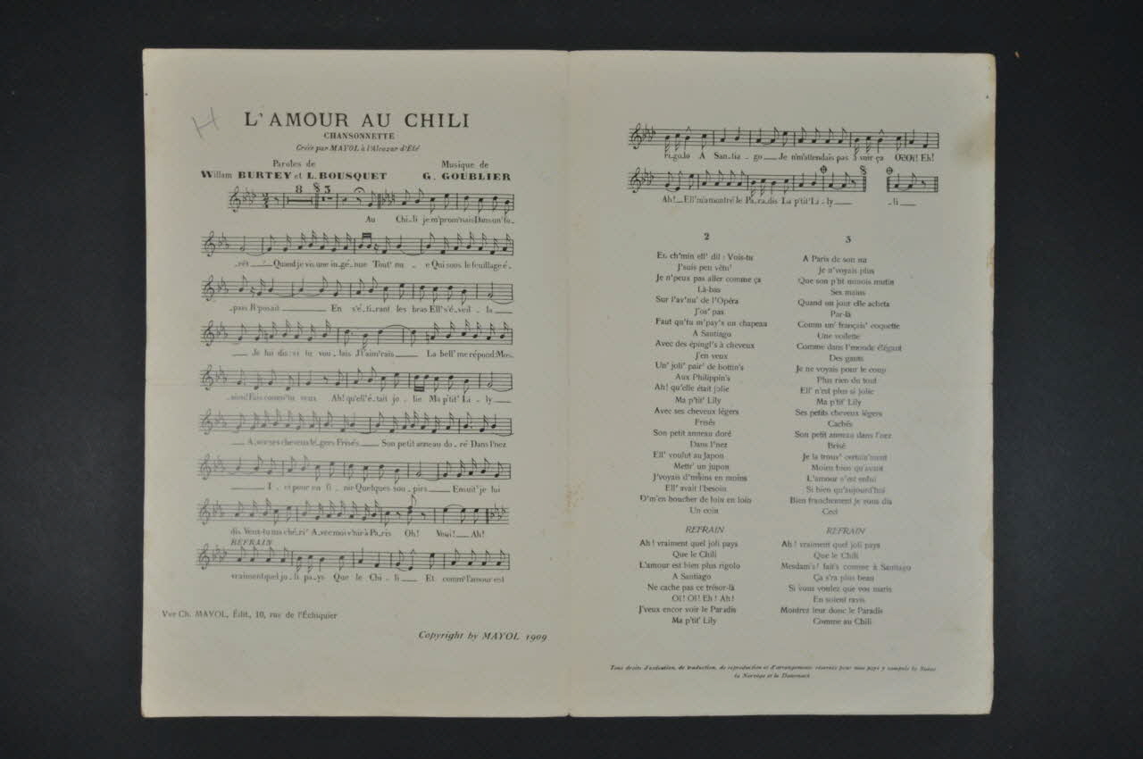 chanson, partition de musique, petit format, L'Amour au Chili