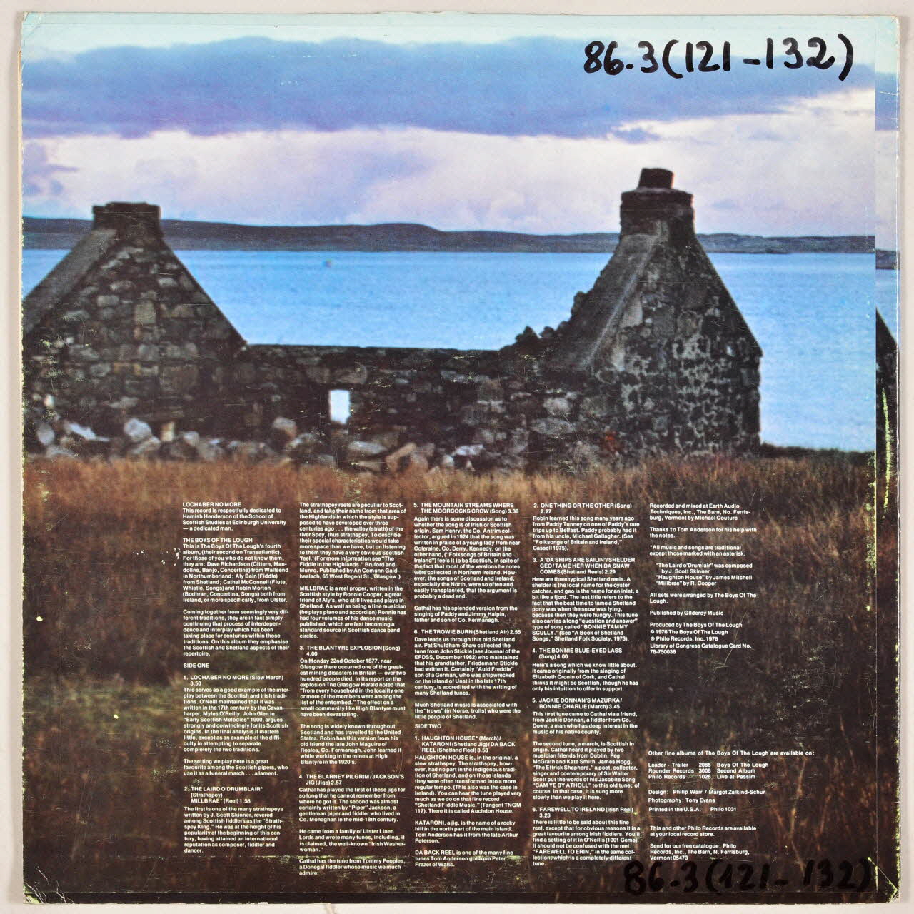 disque 33 tours, Da Back, Jackson's jig, Lochaber no more, Jackie Donnan's Mazurka, Bonnie Charlie, A'da ships are sailin', The Bonnie Blue Eyed lass, The Blarney Pilgrim, The laird O' drumblair, The Trowie burn, One thing or the other, Tame her when da shaw comes, Shelder geo, The mountain streames where the moorcoks crow, Millbrae, Haughton House, Farewell to Ireland, The Blantyre explosion