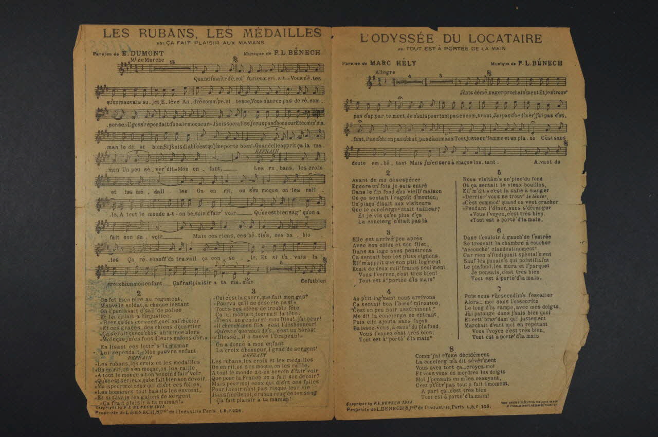 chanson, partition de musique, petit format, L'odyssée du locataire, Les soirées musicales, Les promesses, Les rubans, les médailles