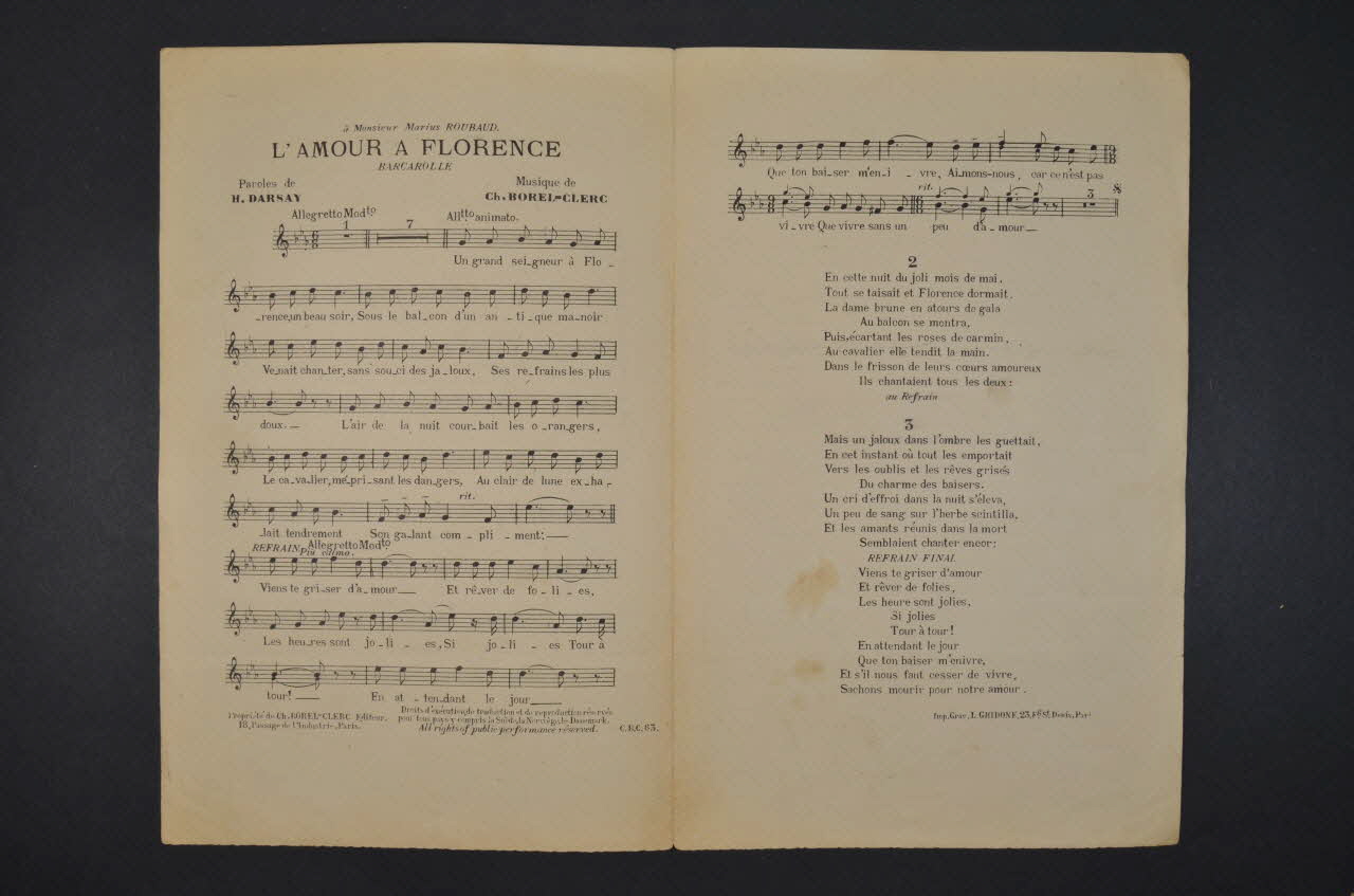 chanson, partition de musique, petit format, L'amour à Florence