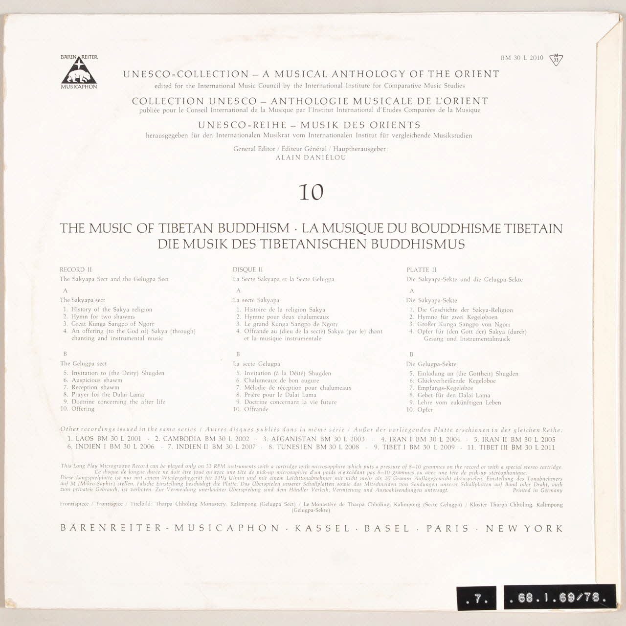 La pochette beige du disque présente, au recto, une photographie couleur d'un bâtiment tibétain.