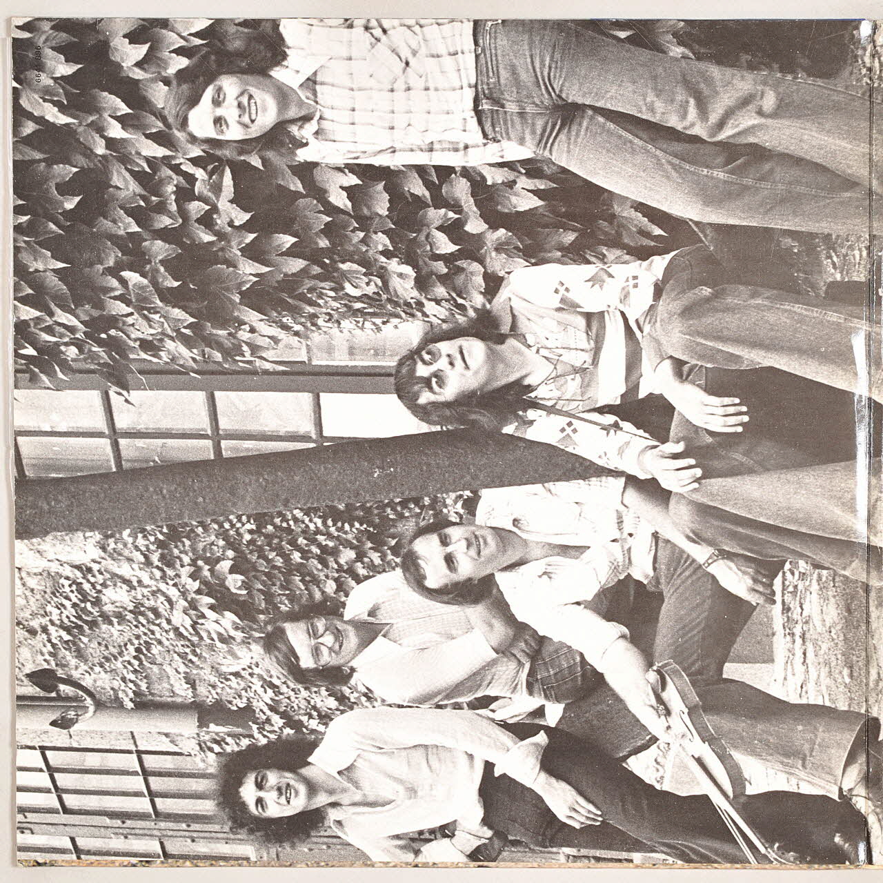 Le verso présente sur un fond bleu uni les titre de l'album écrit en colonne au centre. La pochette s'ouvre dans le sens horizontal. A l'intérieur est visible sur le volet de gauche une photographie noir et blanc du groupe devant un bâtiment au mur couvert de lierre. Le groupe prend place autour d'une ancre de grande taille. Un des membres tient un violon. Sur le volet de troite est indiqué sur un fond blanc la liste des titres de l'album. L'étiquette au centre du disque présente un fond noir sur lequel sont inscrits les titres et le logo de l'éditeur.Inscriptions