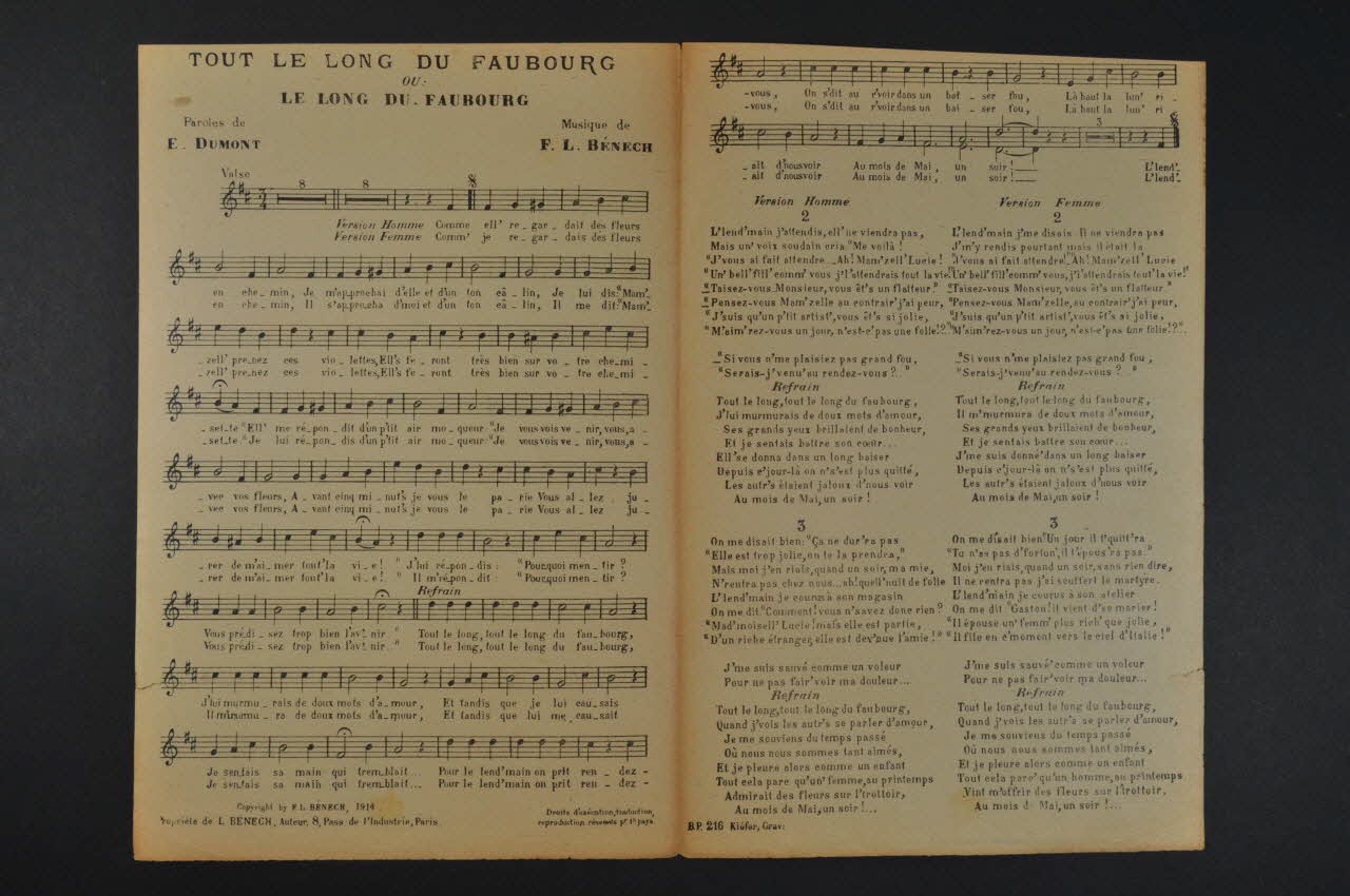 chanson, petit format, partition de musique, Tout le long du faubourg