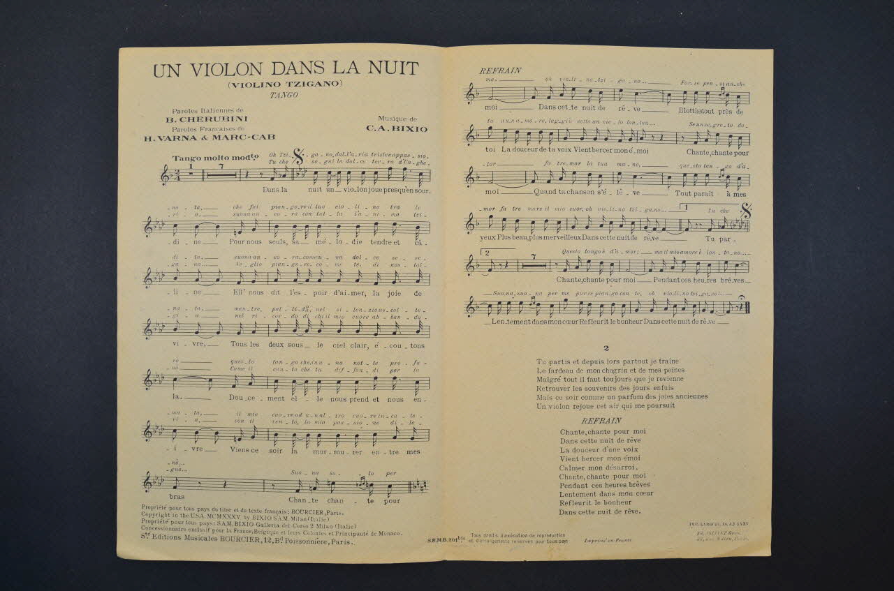 chanson, partition de musique, petit format, Un violon dans la nuit