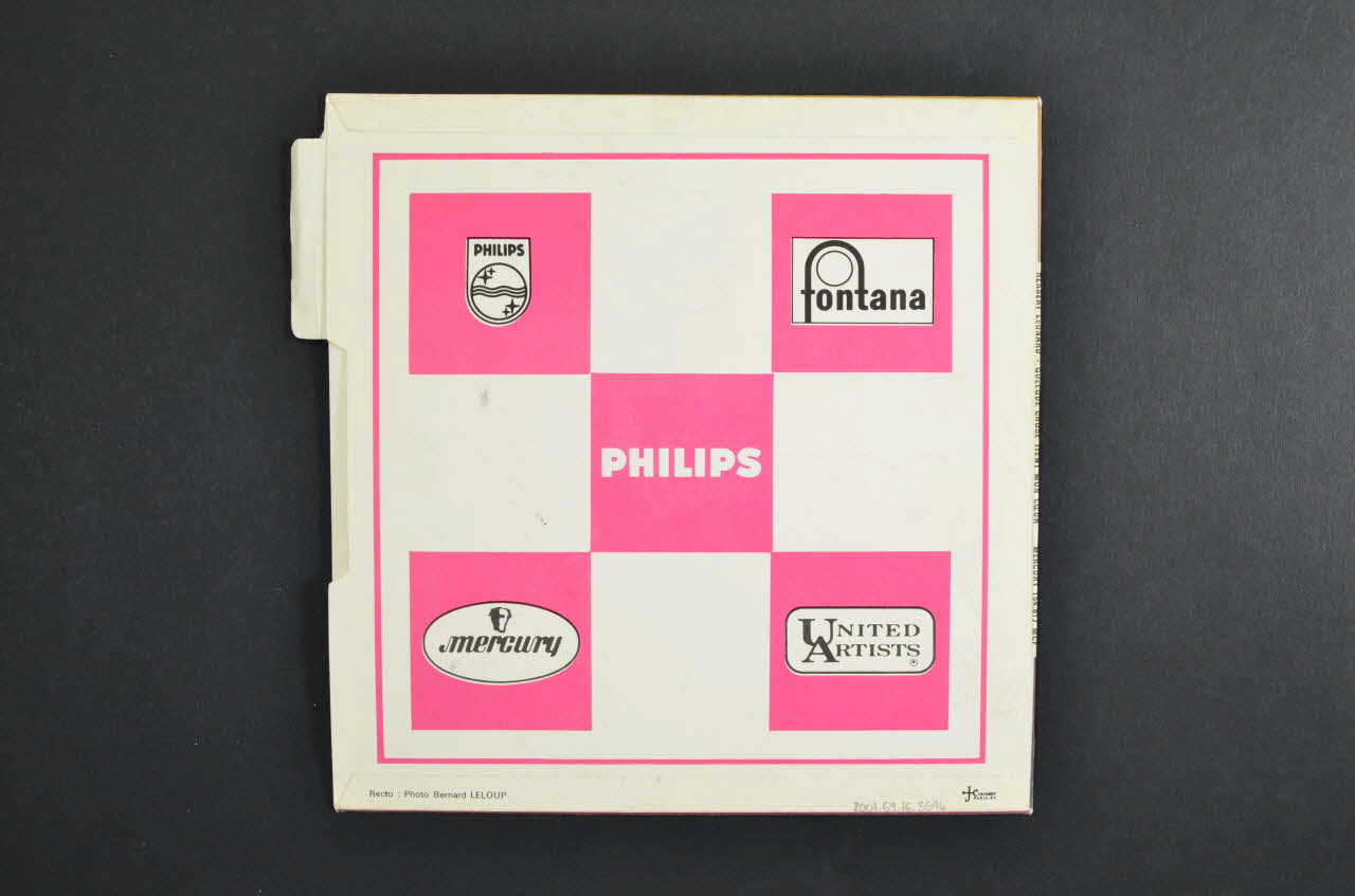 Le recto comporte une photographie noir et blanc du chanteur dans la partie inférieure. Le nom de l'artiste et les titres des chansons sont inscrits dans la partie supérieure sur un fond marron. Le logo de l'éditeur est dans l'angle inérieur droit de la photographie.Un onglet bleu avec des inscriptions noires est situé le long de la bordure droite. Le verso contient un damier rose et blanc avec des logos de producteurs sur les carrés roses.Matériaux et techniques