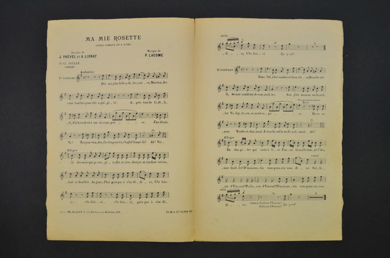 Chanson de l'opéra comique en 4 actes éponyme. Au théâtre des Folies-dramatiques.