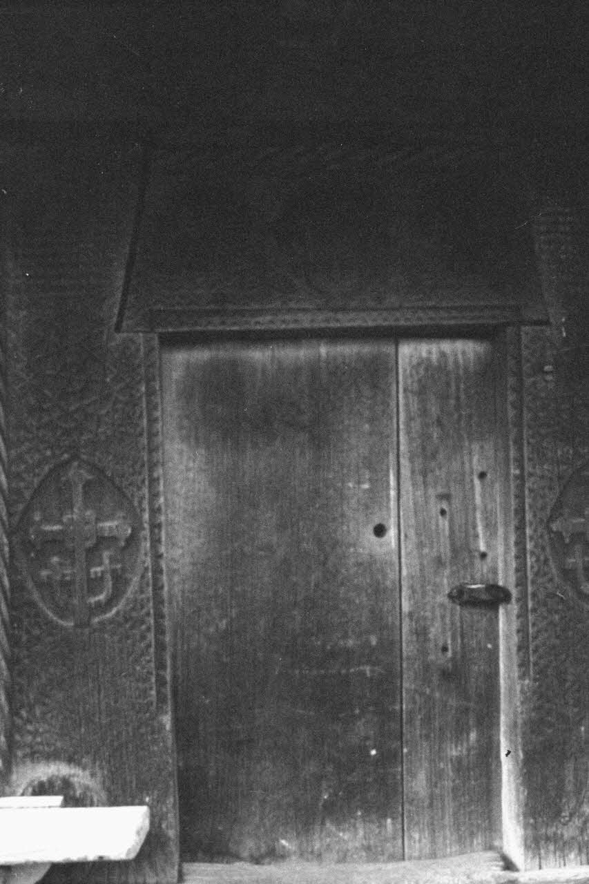 photographie, Enquête conduite par Jean Cuisenier en Roumanie (mai 1973), Eglise à la sortie du village. Vue de la porte Sud
