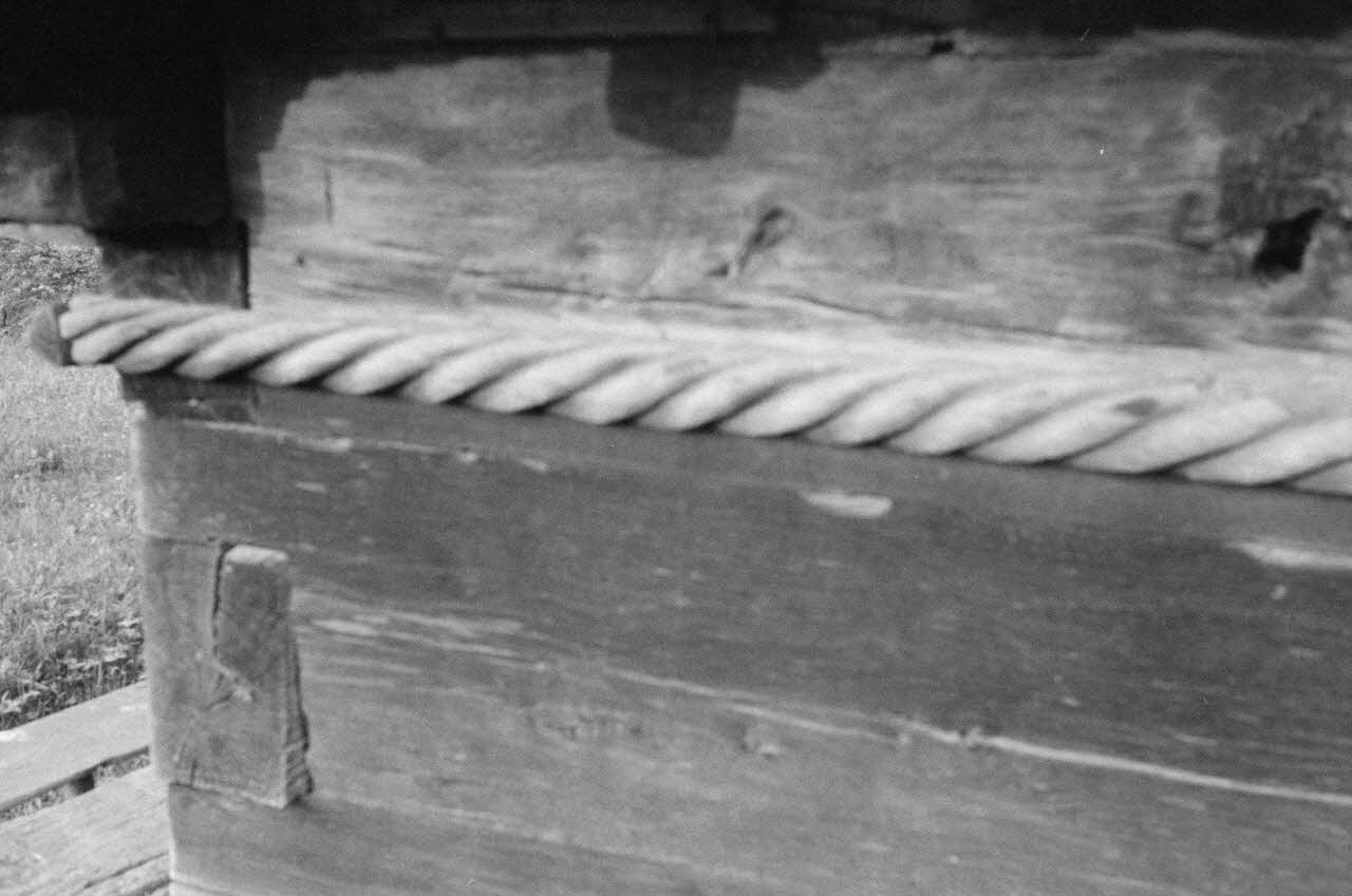 photographie, Enquête conduite par Jean Cuisenier en Roumanie (mai 1973), Eglise à la sortie du village. Détail du travail du bois