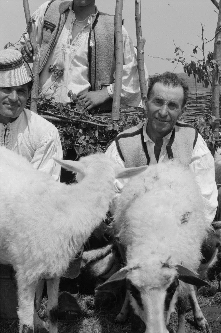 - Scène : groupe : homme : roumain : berger, costume : roumain, traite : brebis