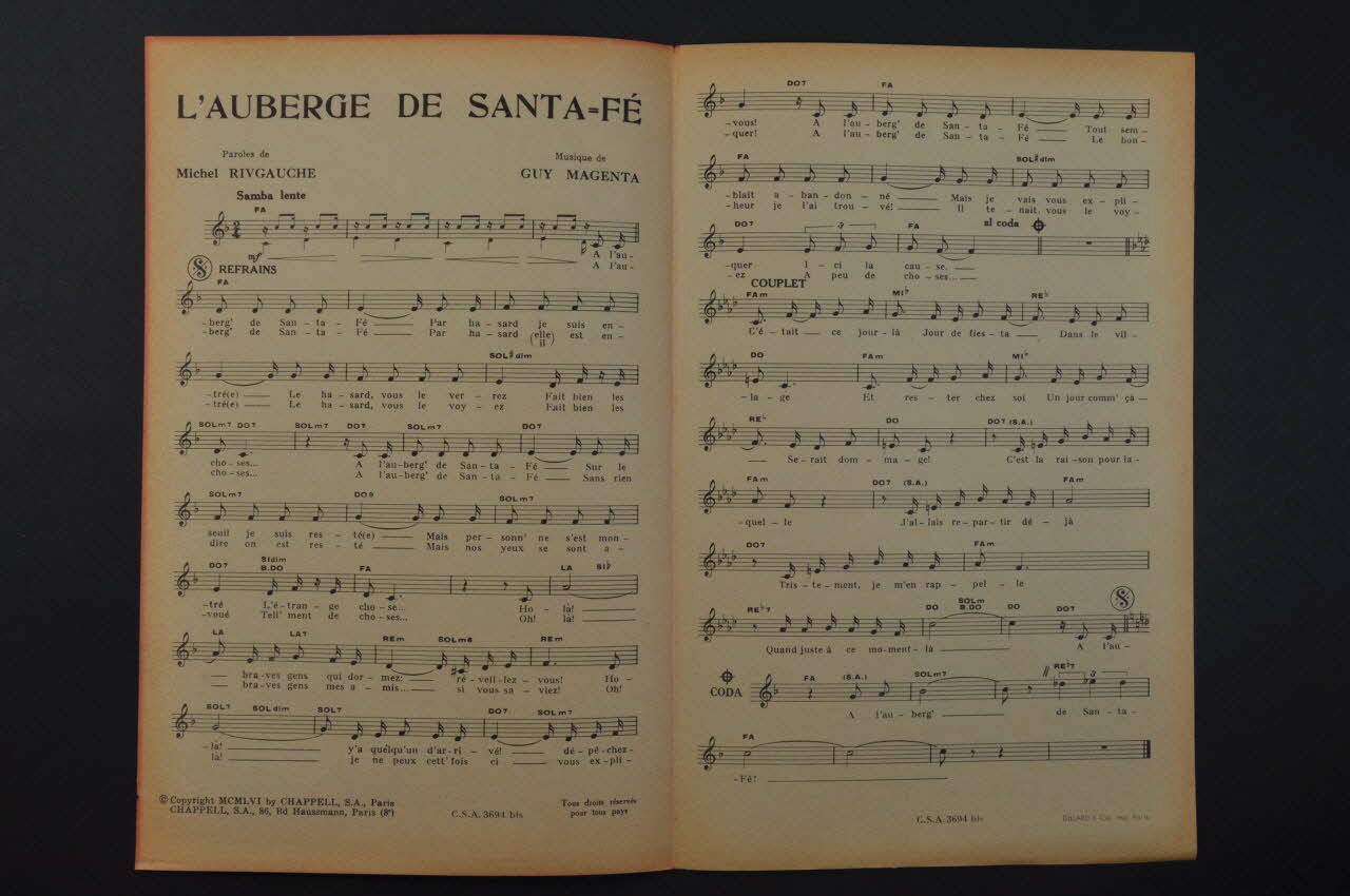 chanson, partition de musique, petit format, L'auberge de Santa Fé