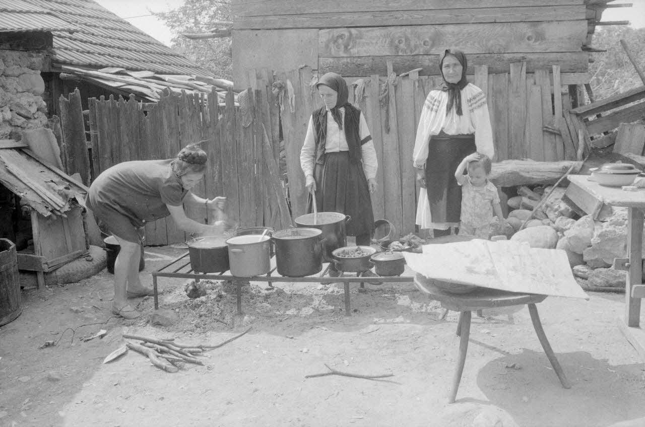 photographie, Enquête conduite par Jean Cuisenier en Roumanie (septembre 1975), Préparation de la cuisine Mamaliga : bouillie de maïs