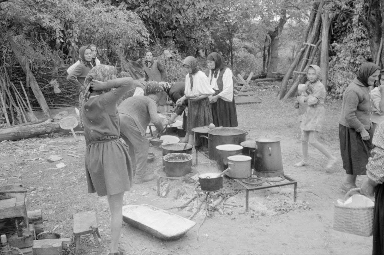 photographie, Enquête conduite par Jean Cuisenier en Roumanie (septembre 1975), Repas à la suite de l'enterrement, la cuisine