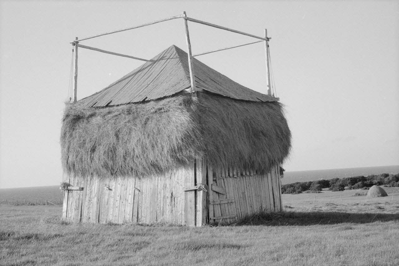 photographie, Enquête conduite par Jean Cuisenier au Québec (septembre 1976), Baraque pour conserver le foin. Bassin (Secteur Ouest)