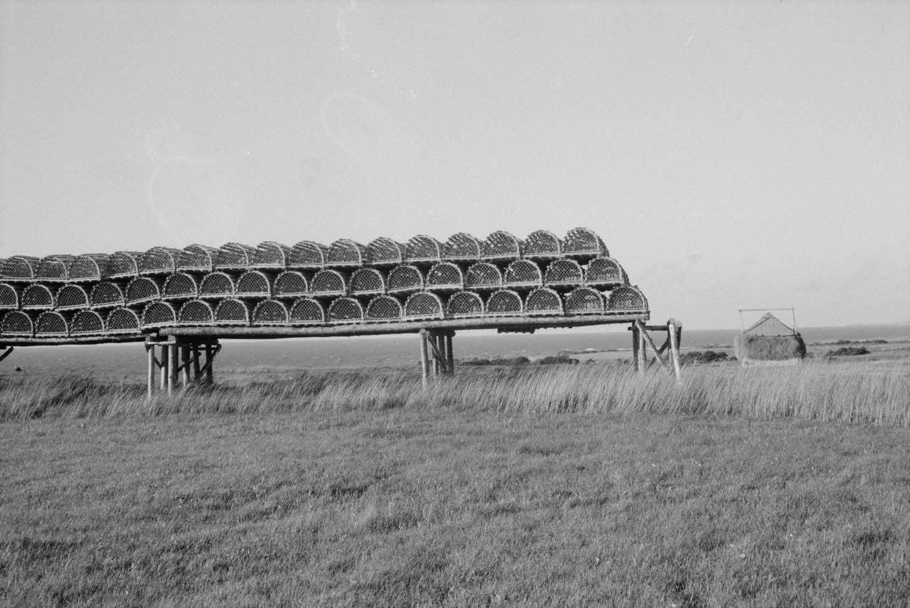photographie, Enquête conduite par Jean Cuisenier au Québec (septembre 1976), Baraque et cages à homards. Bassin (Secteur Ouest)