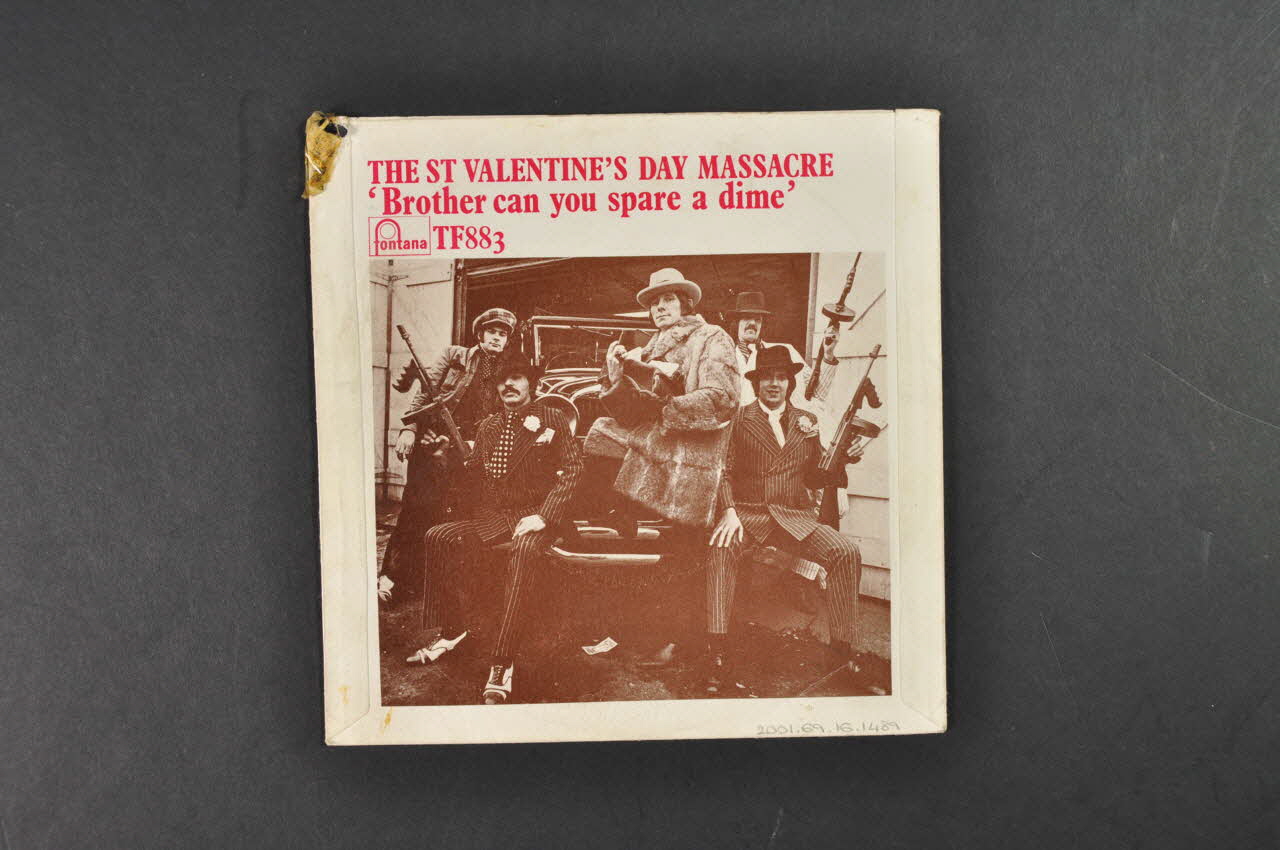 Le recto et le verso sont identiques. Le nom du groupe, le titre de la chanson ainsi que le logo de l'éditeur sont inscrits en haut. En dessous, une photographie noir et blanc représente les membres du groupe portant des armes assis sur le capot d'une voiture.Matériaux et techniques
