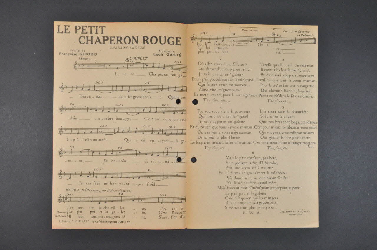 chanson, partition de musique, petit format, Le petit Chaperon Rouge