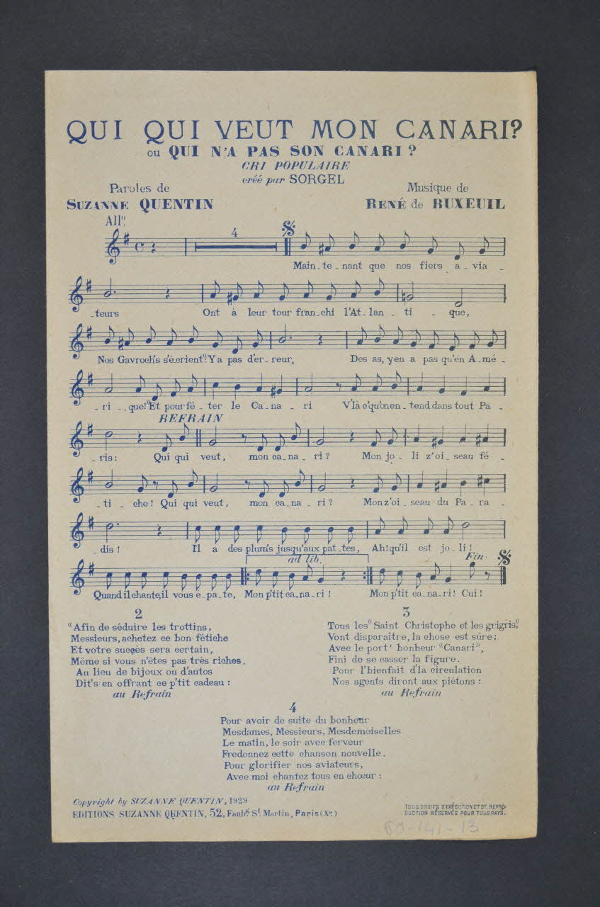 chanson, petit format, partition de musique, Qui qui veut mon canari