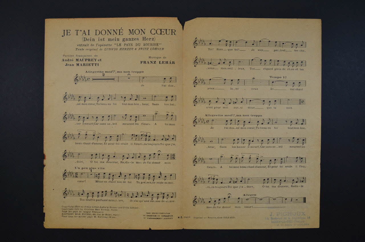 chanson, partition de musique, petit format, Je t'ai donné mon coeur