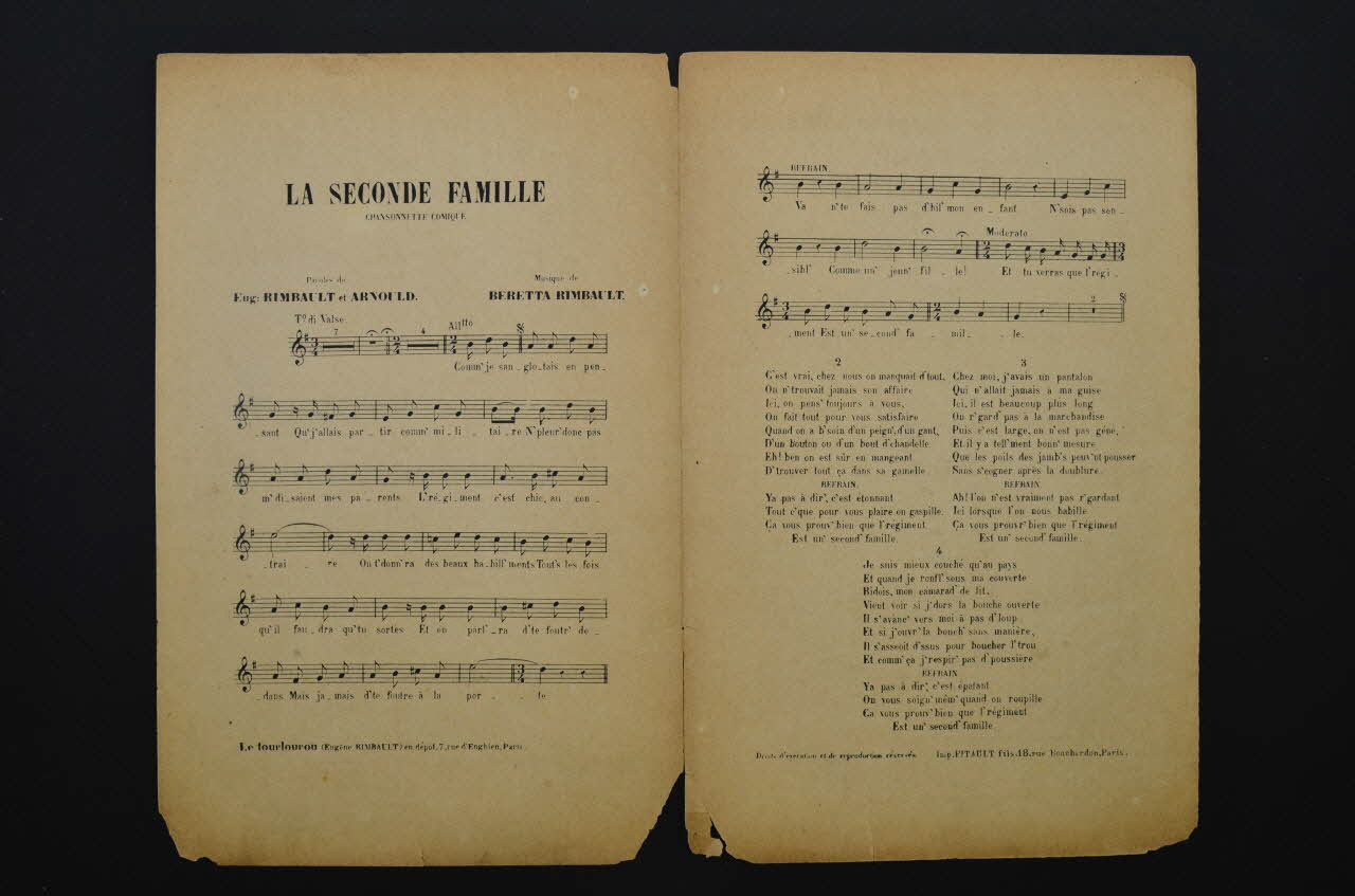 Sur la couverture, la représentation du chansonnier Polin en tenue militaire, riant, une main dans la poche. Les inscriptions renseignent le titre de la chanson, le nom des auteurs, de l'artiste et de l'éditeur. A l'intérieur, partition et paroles de la chanson. Au dos, liste d'autres partitions publiées par l'éditeur.Décor