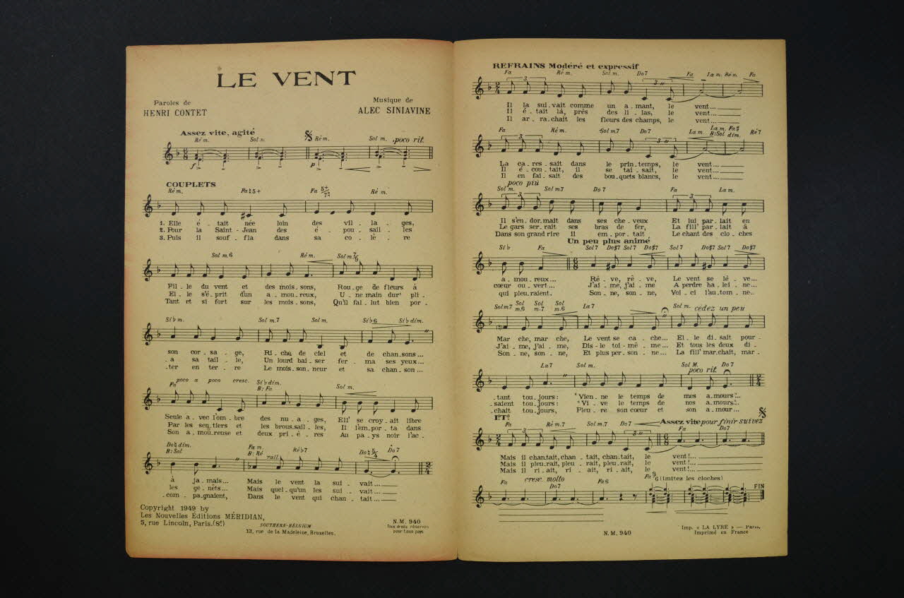 Des inscriptions renseignent le titre, les auteurs, les exécutants et l'éditeur. A l'intérieur, partition et paroles de la chanson. Au dos, liste d'autres partitions publiées par l'éditeur.Décor