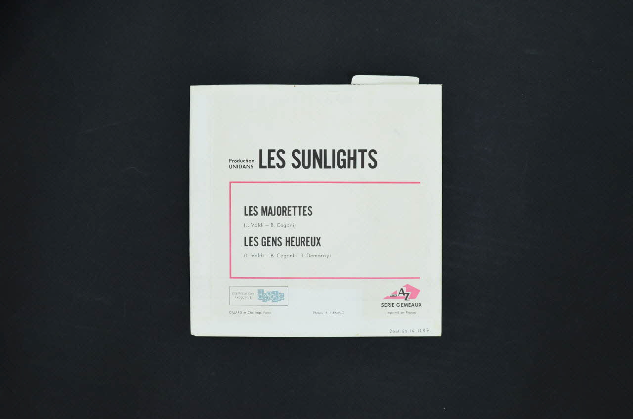 Le recto comporte de haut en bas: le nom du groupe en violet, les deux morceaux présents sur le disque en rouge, les photographies couleur des trois membres du groupe costumés dessus lesquelles se trouvent leur prénom respectif, et le logo de l'éditeur de musique. Une languette est présente sur le bord supérieur, où sont inscrits le nom du groupe, la collection et le nom de l'éditeur, ainsi qu'un numéro.