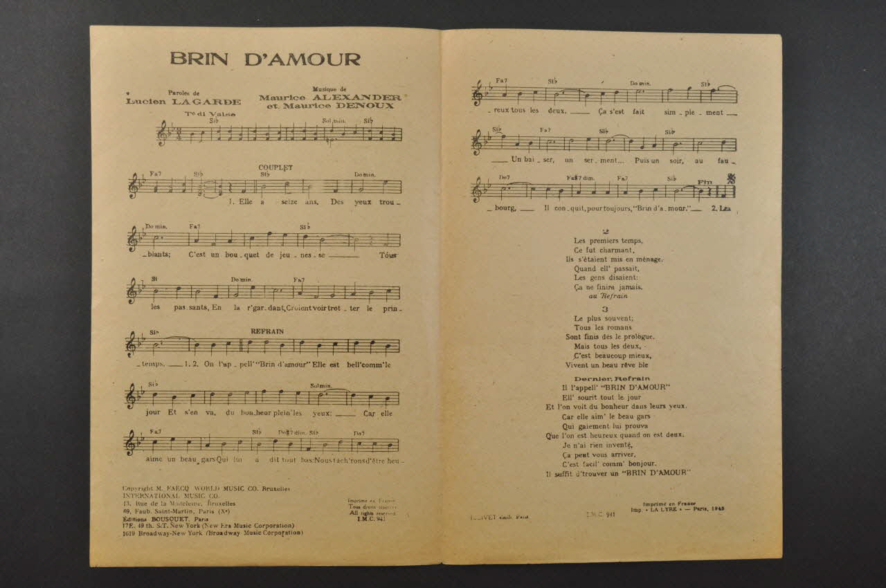 chanson, petit format, partition de musique, Brin d'amour