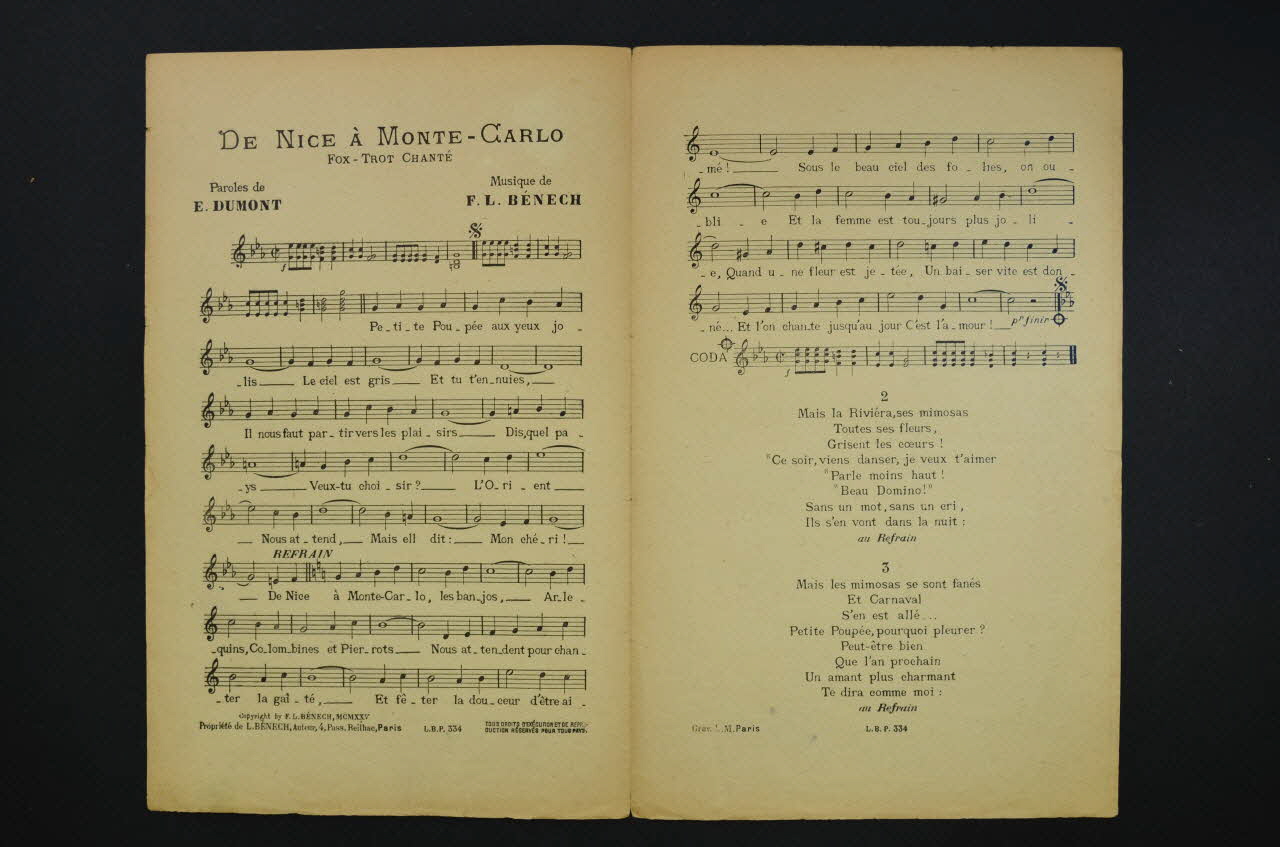 chanson, partition de musique, petit format, De Nice à Monte Carlo