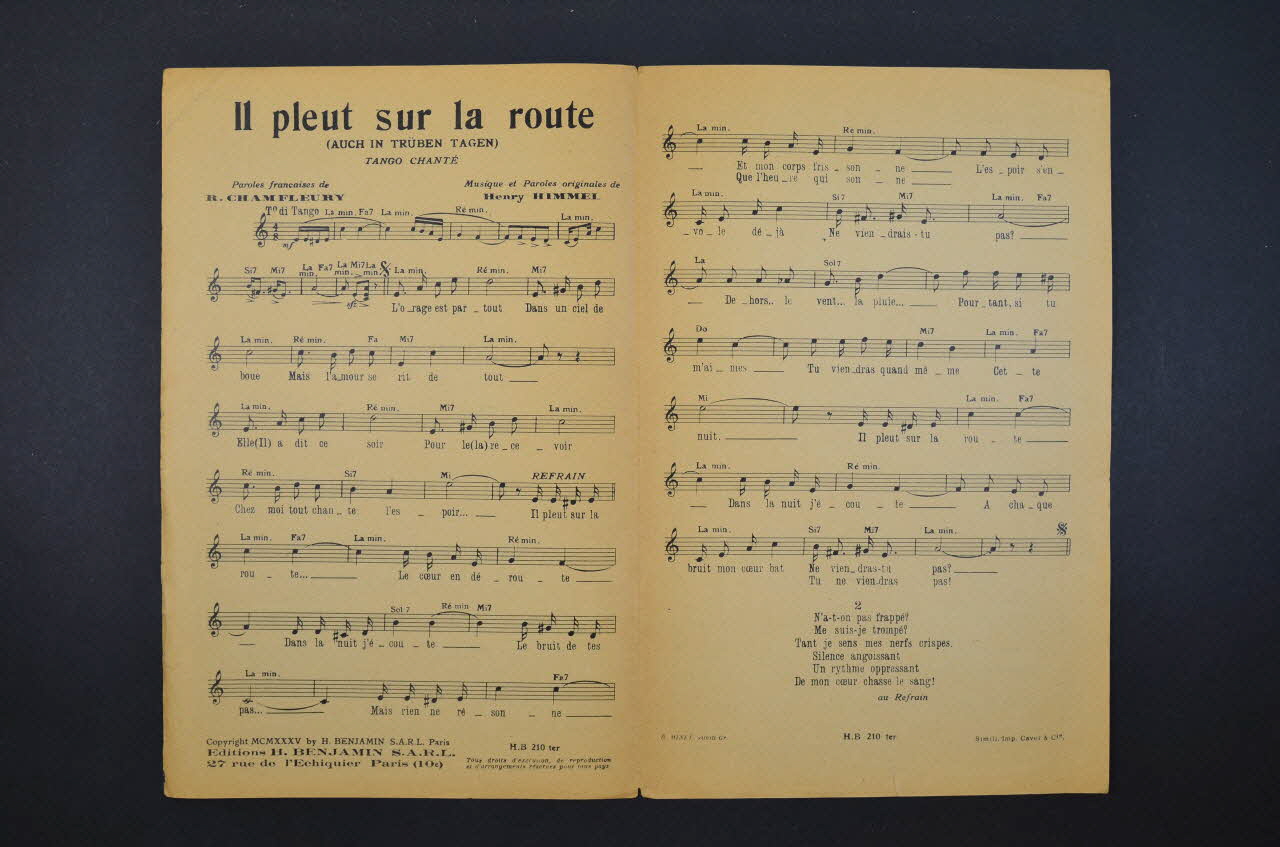 chanson, partition de musique, petit format, Il pleut sur la route
