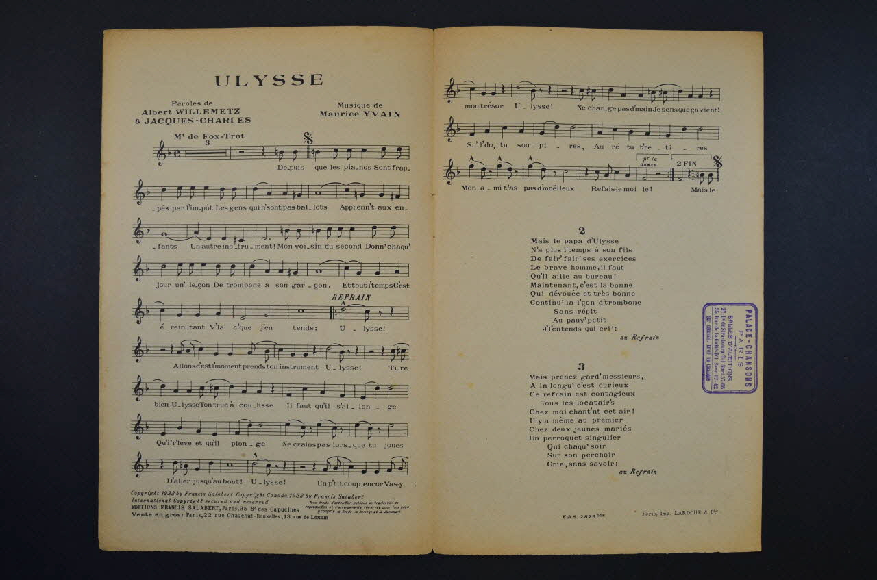 chanson, partition de musique, petit format, Ulysse