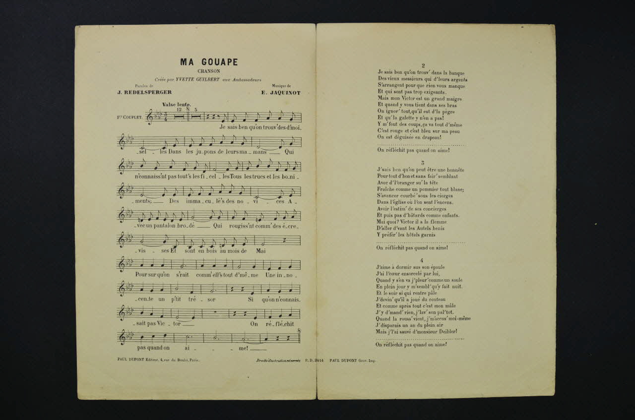 Les inscriptions renseignent le titre de la chanson, le nom des auteurs, de l'artiste et de l'éditeur.