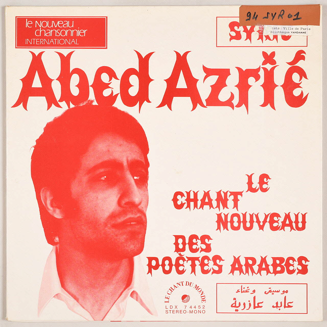 Le recto présente un portrait photographié de Abed Azrié en rouge et blanc. Le verso est une reproduction d'une tapisserie de Jean Picart le Doux, représentant un phénix émergeant de flammes stylisées. la pochette s'ouvre en trois volets. A l'intérieur, on trouve dans un encart à gauche de brèves biographies sur les poètes dont les textes sont reproduits sur le reste de la pochette, à la fois en arabe et en français. Des vignettes illustratives sont encore une fois des reproductions des tapisseries de Jean Picart le Doux : un lion dans un médaillon, une femme nue allongée dans un buisson (Diane?), un hibou, un oiseau en vol, un lapin, un serpet et un scorpion.
