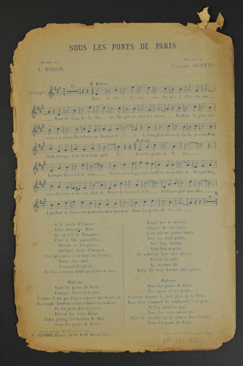 chanson, partition de musique, petit format, Sous les ponts de Paris