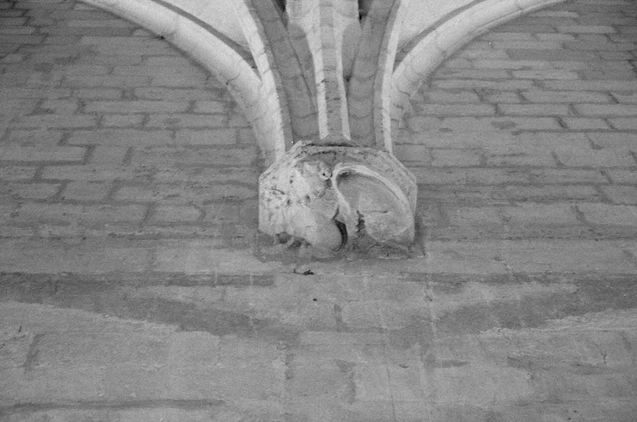 photographie, Enquête conduite par Jean Cuisenier dans le Lubéron (du 9 au 20 septembre 1985), Culot de retombée de voûte, animal monstrueux. Palais des Papes
