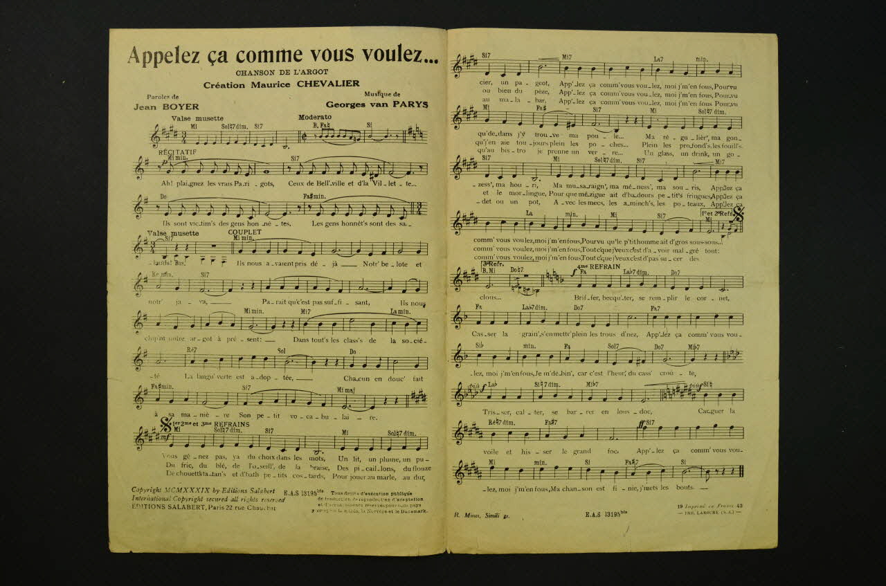 chanson, petit format, partition de musique, Appelez-ça comme vous voulez
