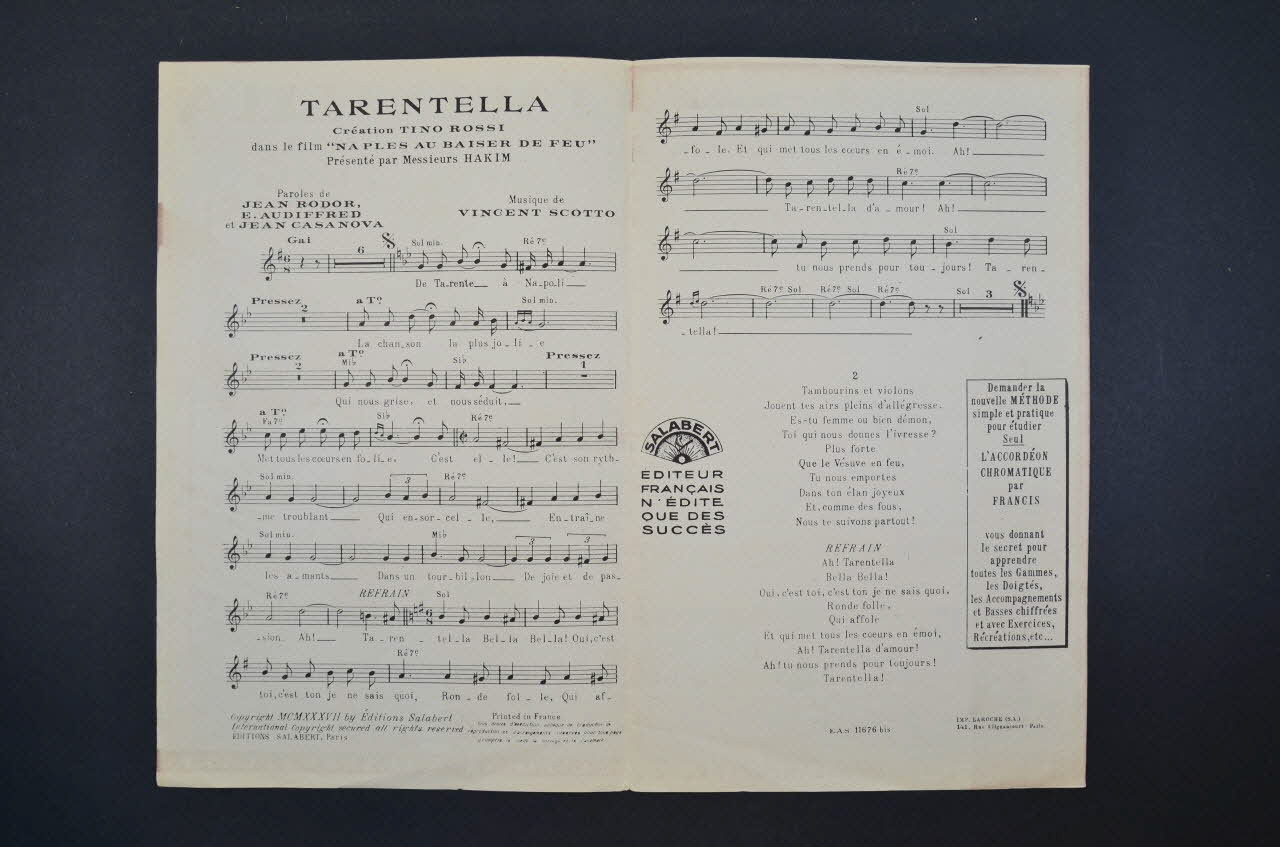 chanson, partition de musique, petit format, Tarentella, Naples au baiser de feu