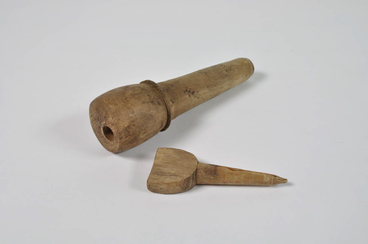 "Riwerla" de tonneau en bois tourné, de forme tronconique, avec bouchon.Matériaux et techniques