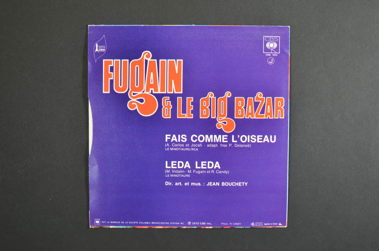A l'arrière figurent, sur fond violet, le nom des artistes en rouge et les titres en blanc.Matériaux et techniques