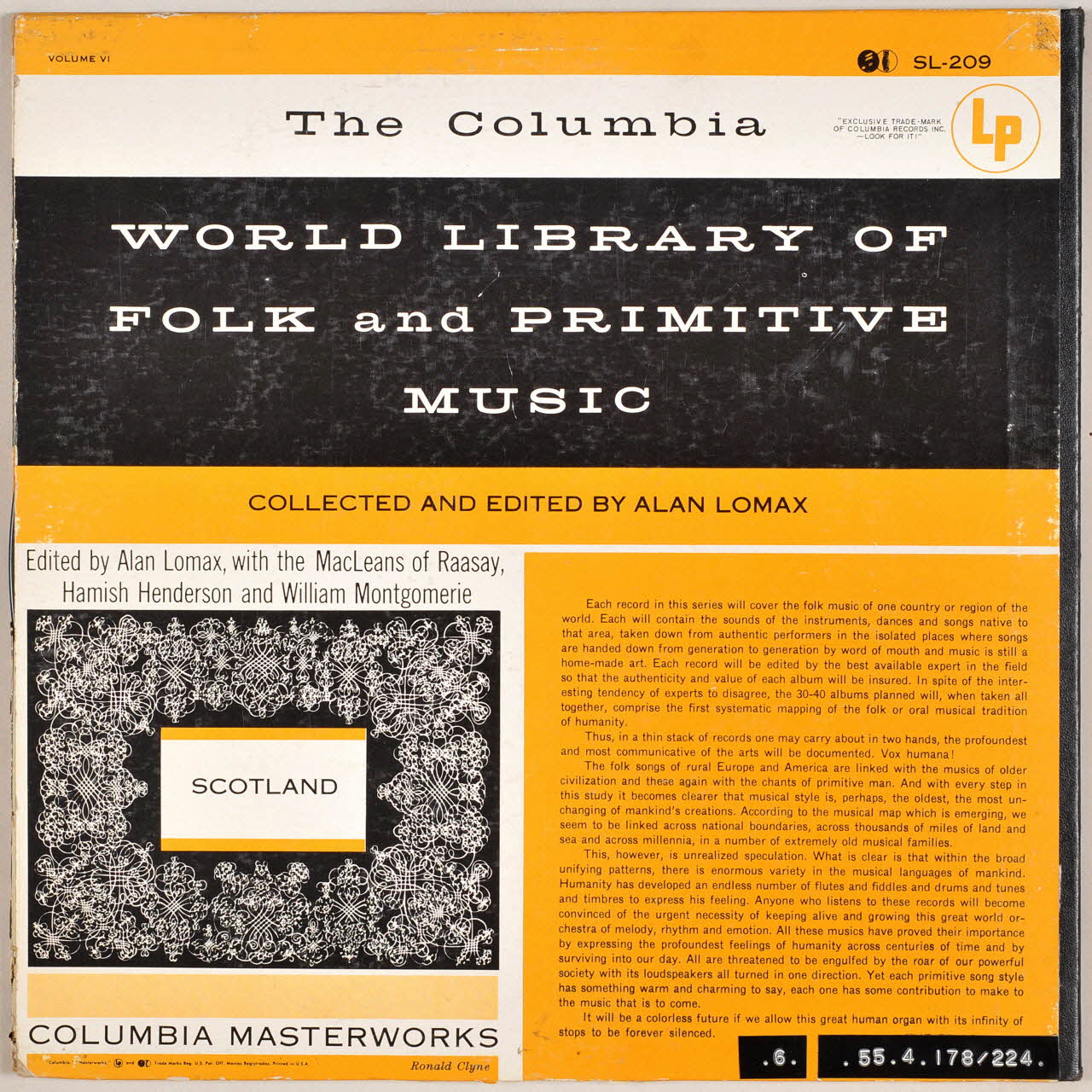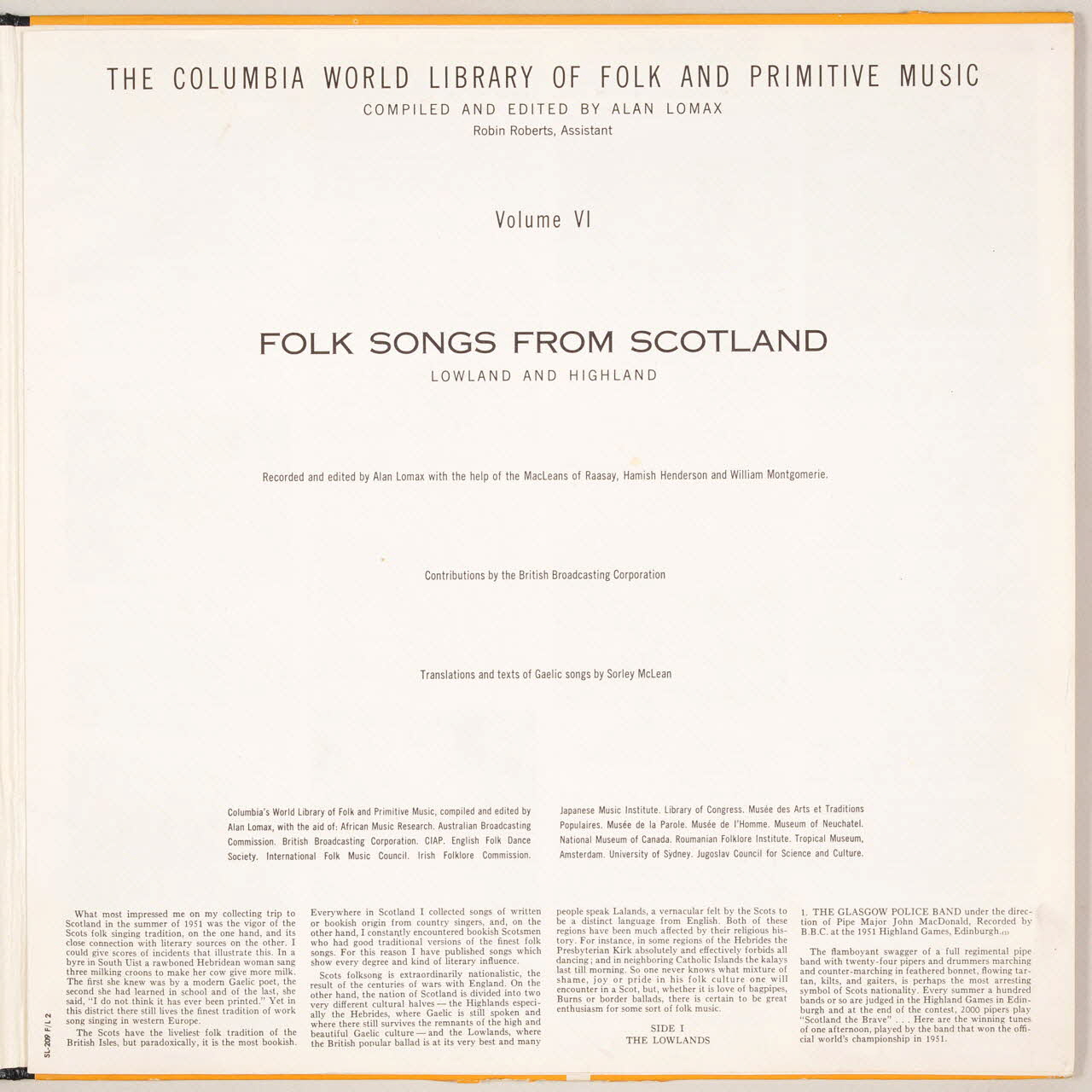 La pochette du vinyle présente au recto, une carte de l'Ecosse et de ses îles ainsi que des inscriptions renseignant l'éditeur et le collecteur, que l'on retrouve au verso.