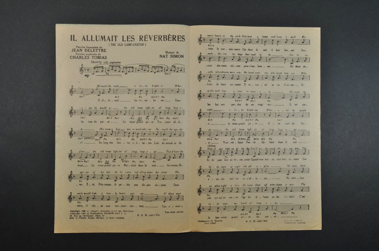 De : Lieu : Paris, Île-de-France, FranceDate : 1947paroles anglaises / 30 rue de l'Echiquier