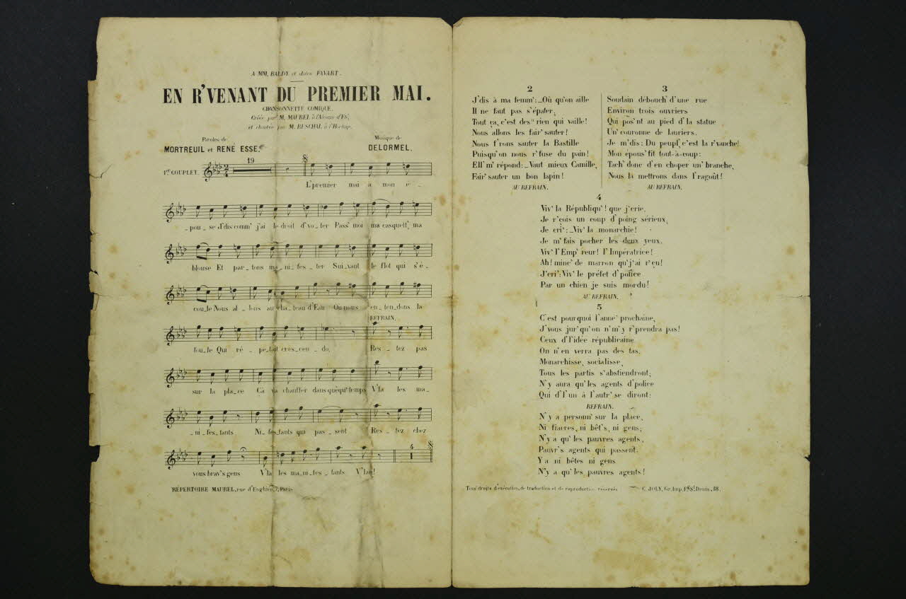 chanson, petit format, partition de musique, En r'venant du premier mai