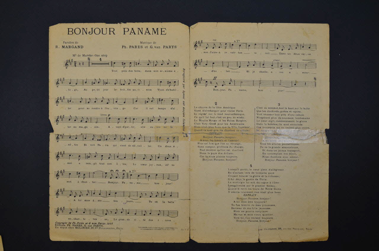 Sur la couverture, les portraits photographiques en médaillon de Lyével, Bervyl, Watson et Monty. Les inscriptions renseignent le titre de la chanson, le nom des auteurs, des artistes et de l'éditeur. A l'intérieur, partition et paroles de la chanson. Le dos est laissé vierge.Inscriptions