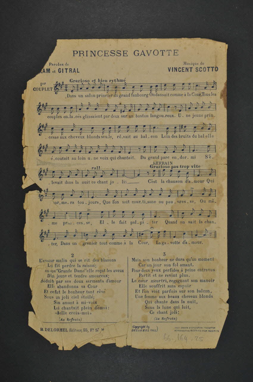 chanson, partition de musique, petit format, Princesse Gavotte
