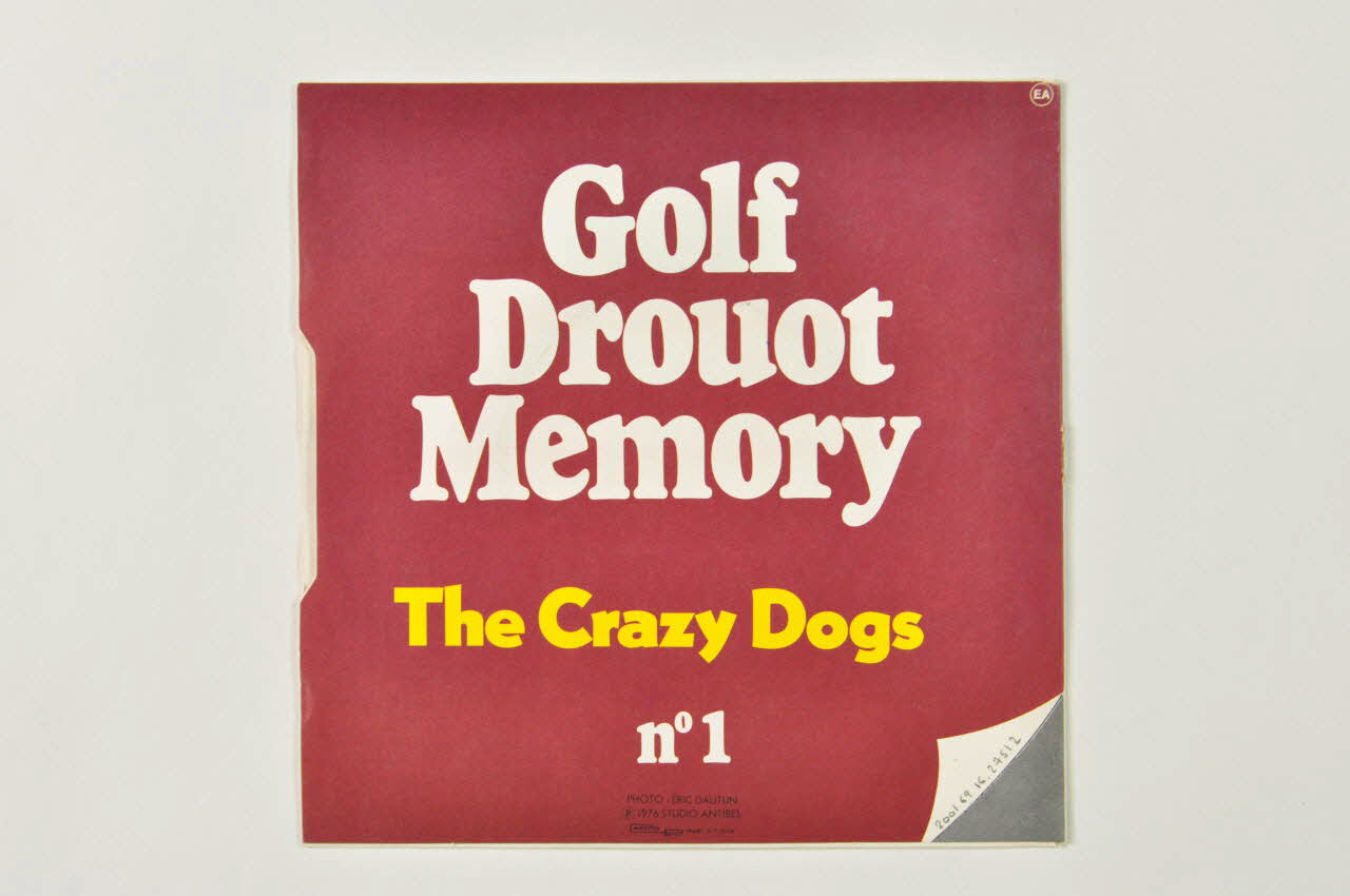 .1 : Le disque rond et noir comporte une perforation circulaire au centre. Une étiquette orange contenant le nom du groupe, le titre des morceaux, le logo de l'éditeur ainsi que d'autres inscriptions noires, est collée au centre.