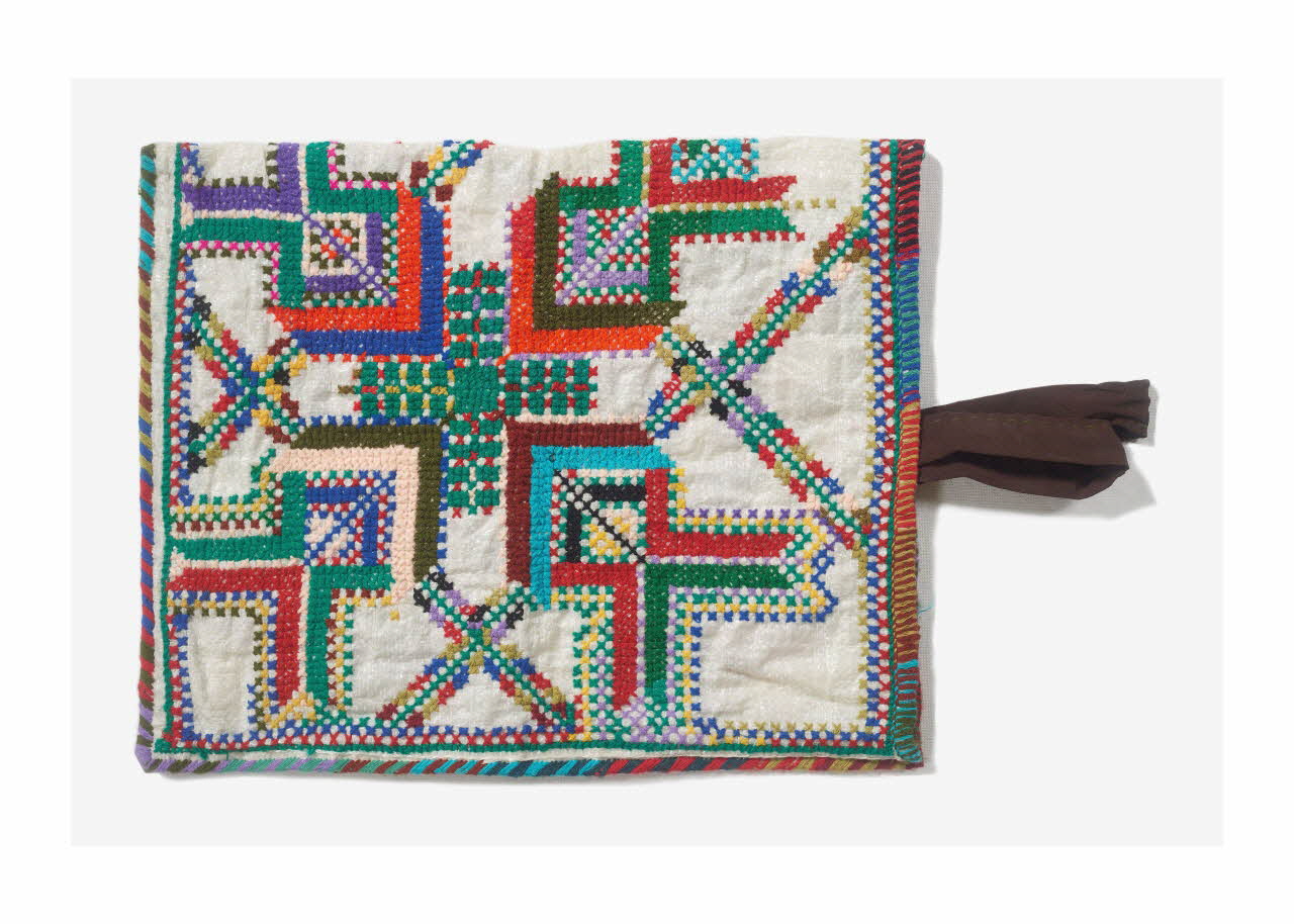 Lieu : Qalaat Najm, SyrieDate : 2009Broderies réalisées par les femmes de la tribu des Hawks, bédoins sédentarisés depuis longtemps sur les bords de l'Euphrate. Les petites filles sont initiées très tôt à la broderies. Les broderies sont en principe réalisées sur une toile de coton blanc ou de la toile de jte de récipération. Dans le cas présent, il s'agit d'un sac en plastique recyclé (sac à grain de récupération).